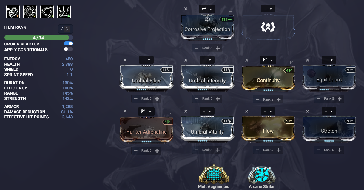 You can absolutely use unranked versions of these things, and some of them are far from mandatory at all. Molt augmented is an arcane you should be farming for anyways as soon as it's available from the Zariman, and Arcane Strike is available from eidolons, dissolution, or frequent events. this build takes good advantage of the umbral set you get right after The Sacrifice, and the rest of the mods in this build should be rather easy to obtain.